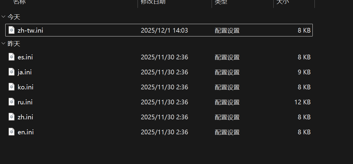然后另存为同一目录下,文件名可以是 zh-tw、zh-hk,或者 tw、hk 均可,注意不要修改文件扩展名。