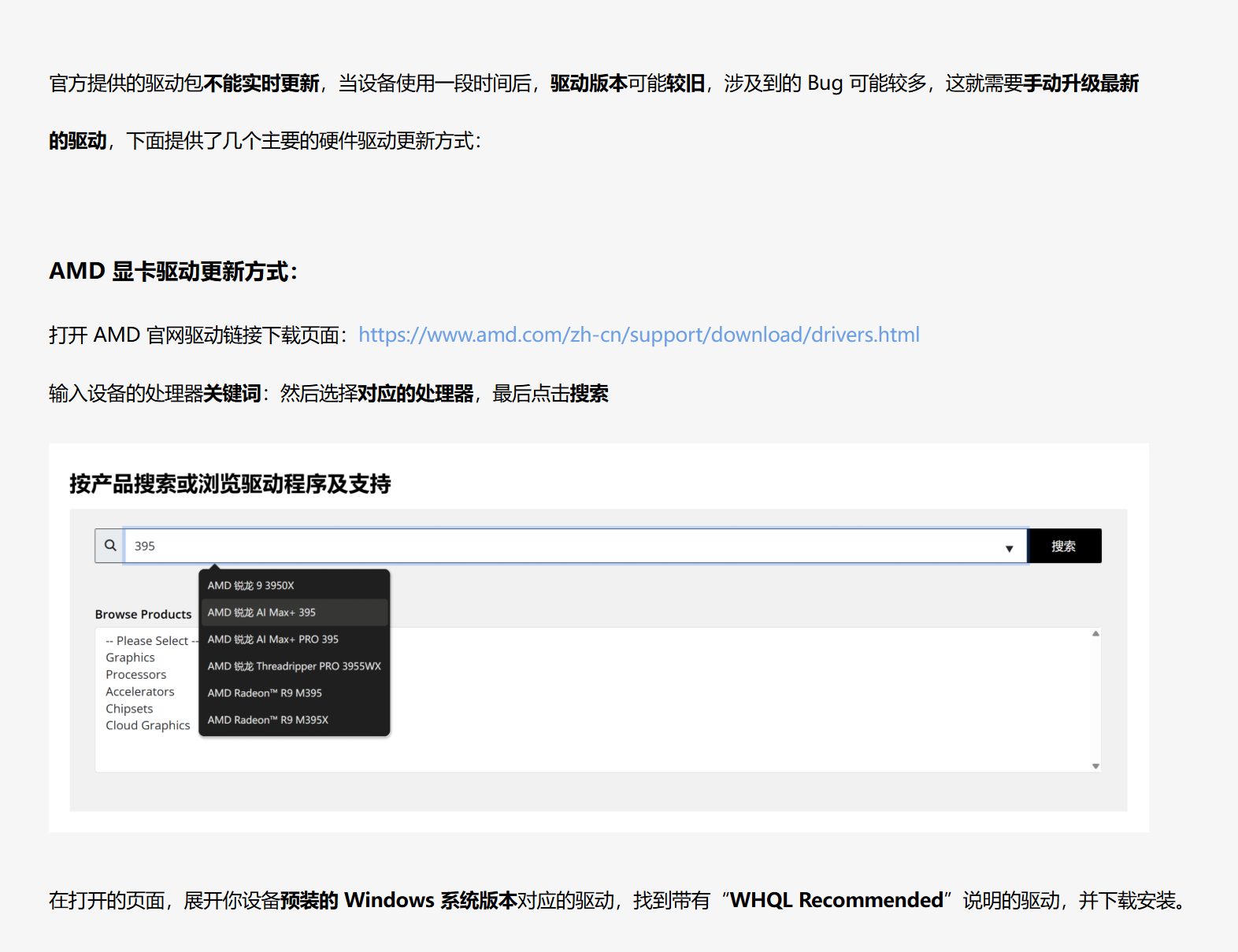 下方就可以找到针对 AMD 显卡和芯片组驱动的升级说明。